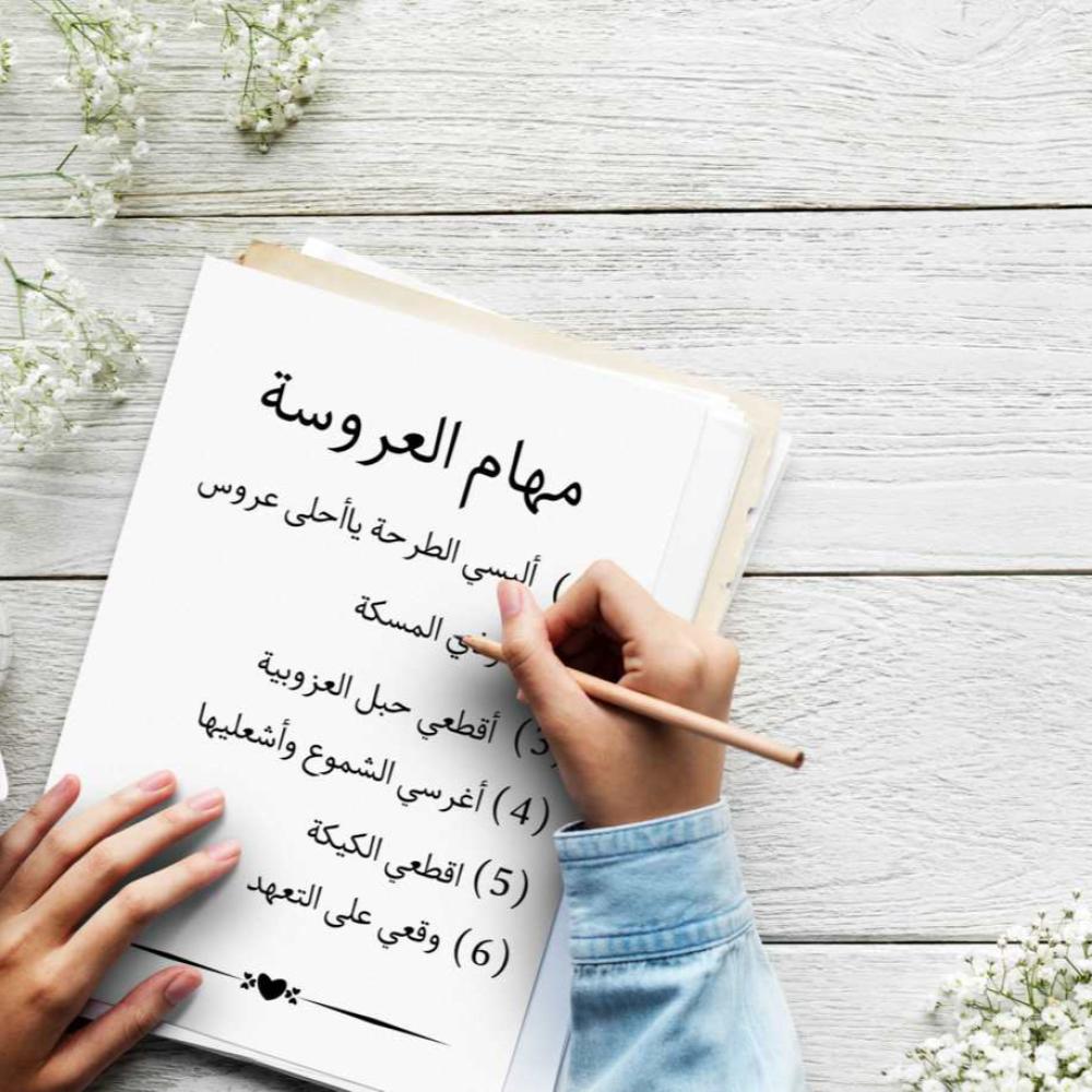 ملف احداث فعاليات توديع العزوبية للعروسة 2هو ملف يمكن طباعته على ورق A4 مقوى او عادي وتقديمة للعروسة اثناء حفل توديع العزوبية وهو باللون الأبيض والأسود يتكون الملف من ست مهام توديها العروسة بكل سعادة وحماس مهام العروسة هى: